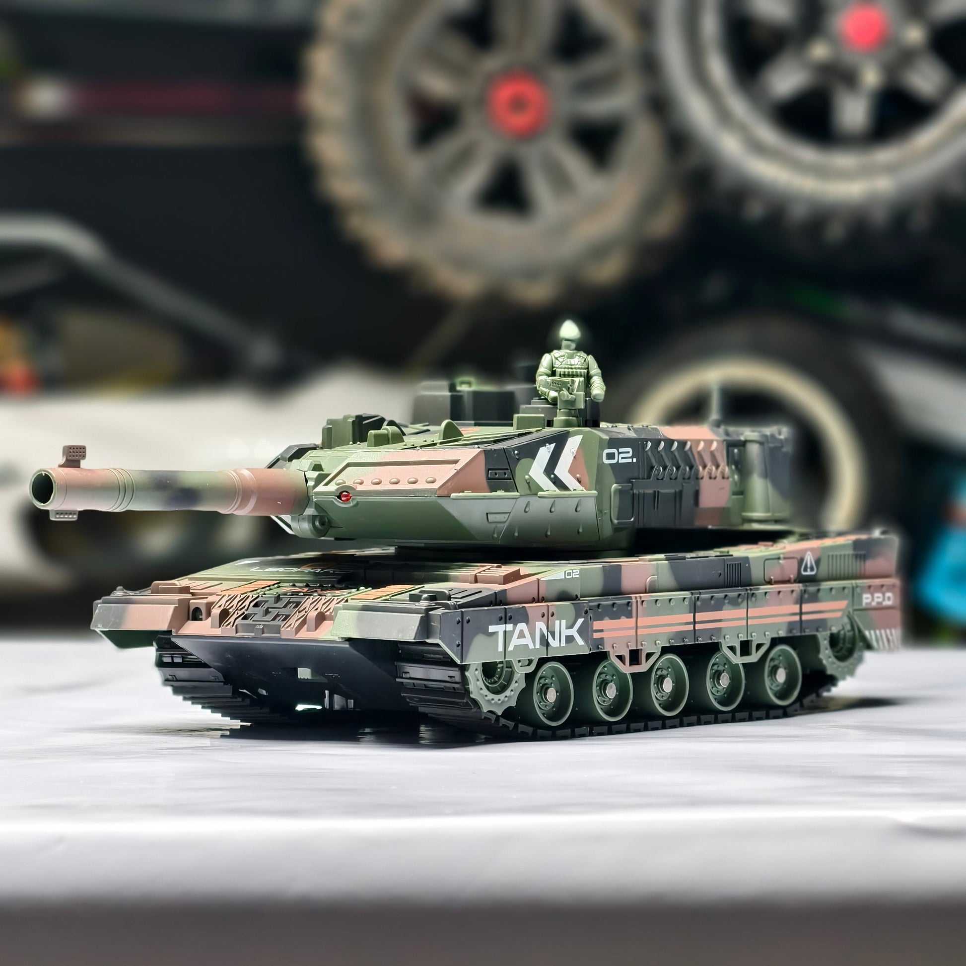 Army Tank with 360°Rotating Turret, Auto Demo, Sound & Smoke & Light, Military Vehicle remote control