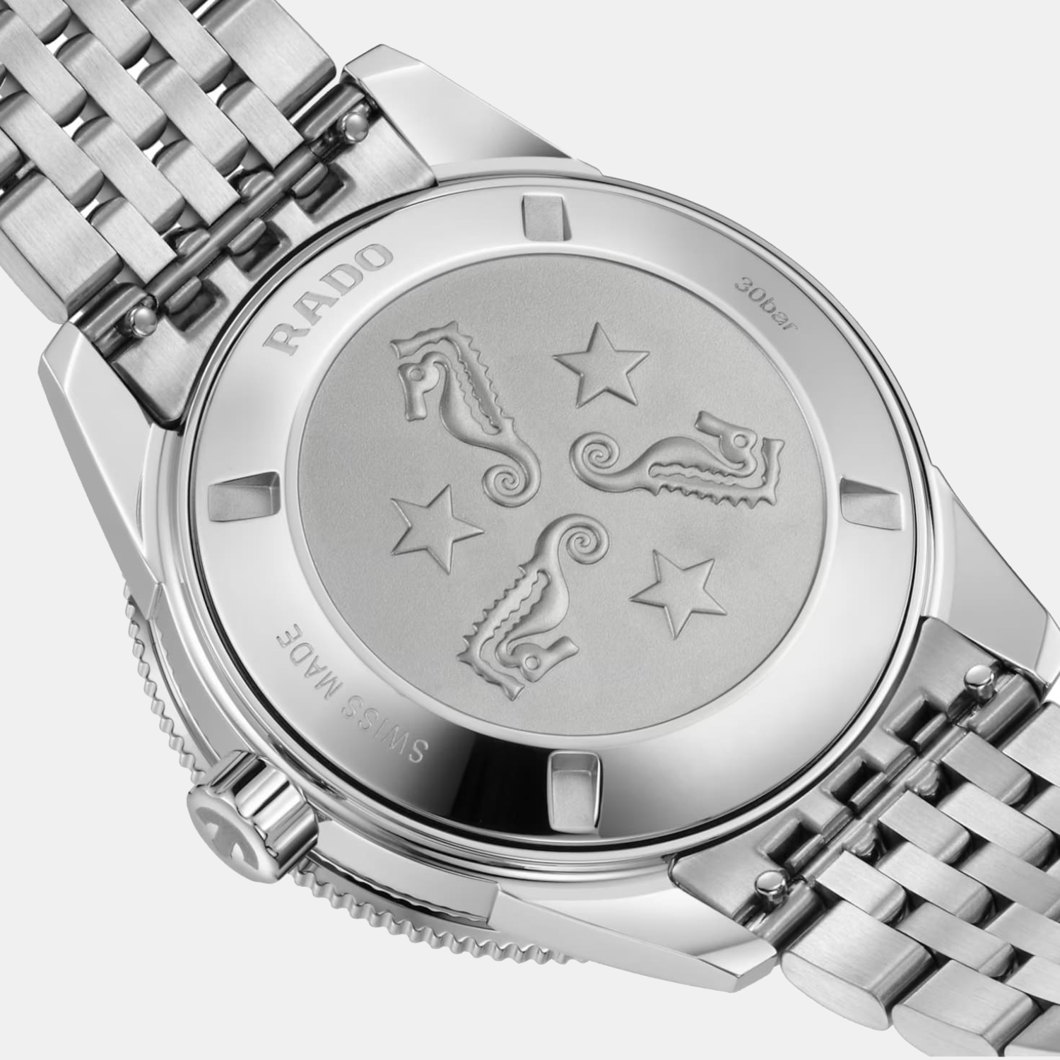 Precision meets style in the Captain Cook —a timepiece built for those who demand performance in every setting. The 39 mm polished stainless-steel case, is paired with a polished stainless steel turning bezel and a polished black ceramic insert, engraved with white markers.